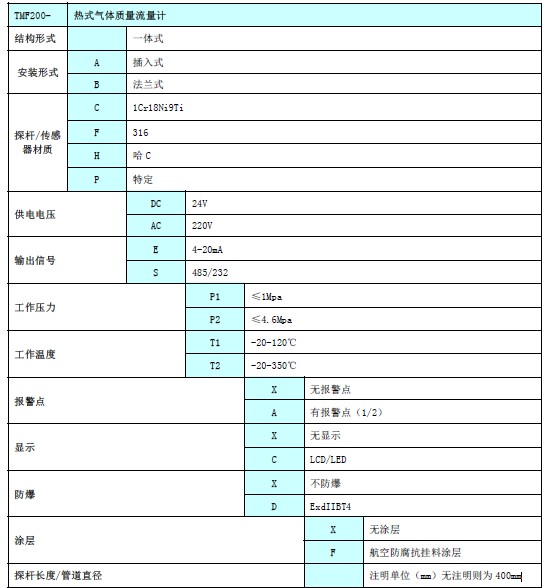 LK-TMF熱式氣體質量流量計有插入式和帶測量管式兩類,插入式傳感器為直徑1/2”,最長36”(914mm)的探頭(更長傳感器也可制造);帶測量管式傳感器有1/4到6”(6.25mm到152mm)的測量管,帶內置流量調節器從而無須上下游有較長直管段,管道連接可以是法蘭、NPT螺紋或焊接。材質為316不銹鋼,哈氏C合金或其它材料。
